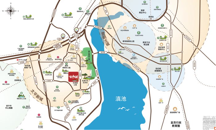 受惠于此,浩创·悦山湖不仅将成为太平新城距滇池最近的项目,距昆明繁华市区的距离也将大大缩短。在“昆安一体化”的大趋势中,太平新城悦山湖片区将是一个拥有山水双重自然资源,聚集昆明未来发展潜力的关键连接点,重要性不言而喻。