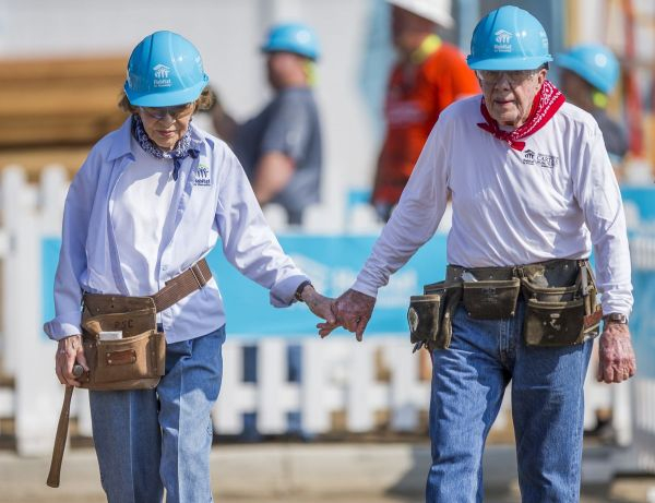 2018年8月27日,卡特与妻子罗萨琳携手参加志愿者活动。(美国《言论评论报》网站)
