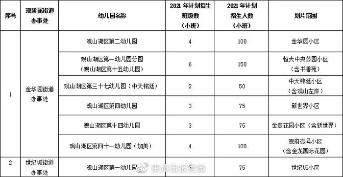 原标题:贵阳观山湖区2021年公办幼儿园招生通知