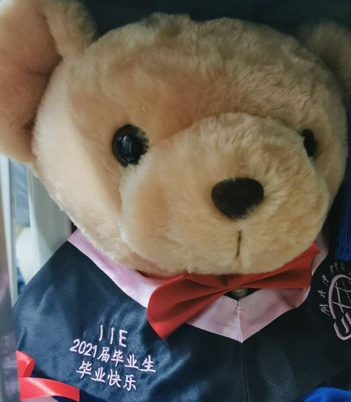 戴着学位帽的“国宝”熊猫玩偶
