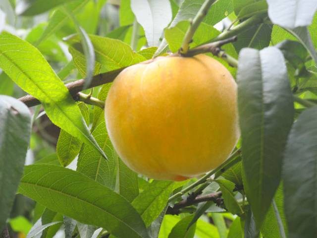 果农会在开花季大量疏果,保证一个枝条上只留一个黄桃,这样营养成分就会聚积在这一个黄桃之中。