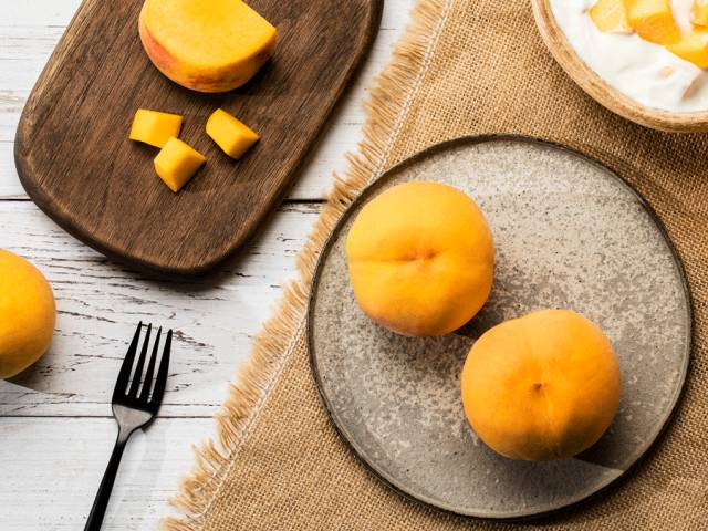黄桃果肉偏硬,不易剥皮,喜欢吃软一点的同学,收到桃子后可在阴凉处放置2-3天,果肉会变软,香气也会增加。