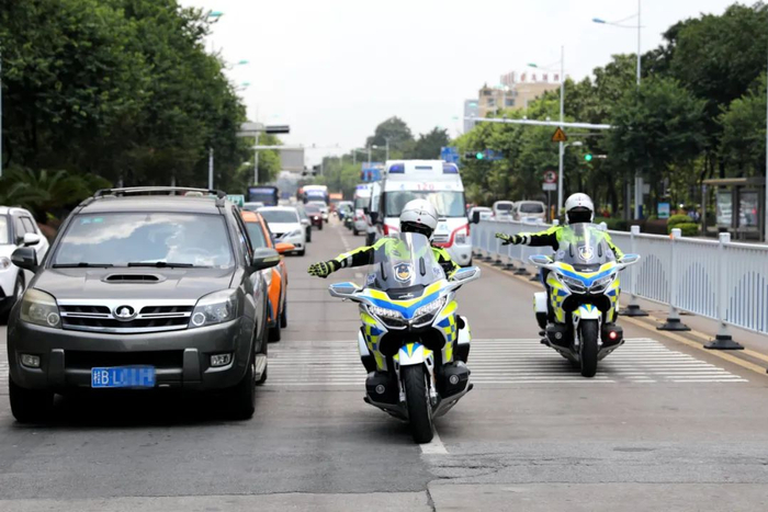 市区路况复杂,柳州交警除了通过智能指挥系统为车队在辖区内提供“绿波带”外,还派出3辆铁骑在高速公路出口接应,为车队顺利通行提供全方位的保障。