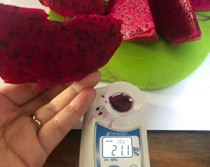 一般红心火龙果甜度在14度左右,而海南金都一号甜度能达到21°!