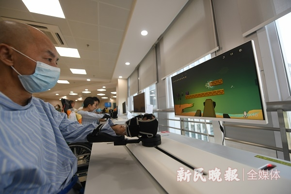 64岁的江苏患者李先生年初因车祸导致颅脑外伤,当地手术后便在永慈康复医院进行康复。女儿每天都会陪他到“物联港”做半小时的锻炼。在治疗师的协助下,李先生背靠人工智能下肢康复机器人,缓慢“迈步”朝前走。女儿告诉记者,通过机器,可以帮助他建立正常的步态模式,对陪同的家属、治疗师来说,也不用再费力地扶着了,节约了大量体力及时间,整体康复效率更高。
