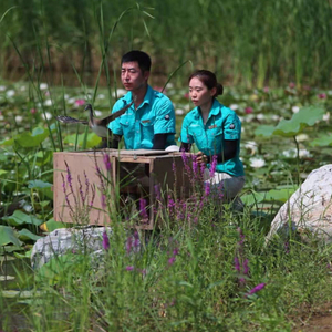 此次鸳鸯放飞的地点位于公园东南部的福泽湖,经过技术人员前期勘查,这里有宽阔的水面,植被发育良好,水草和水生软体动物、鱼虾、蛙类数量较多,可为放飞的鸳鸯提供足够食物,满足鸳鸯野外生存需求。