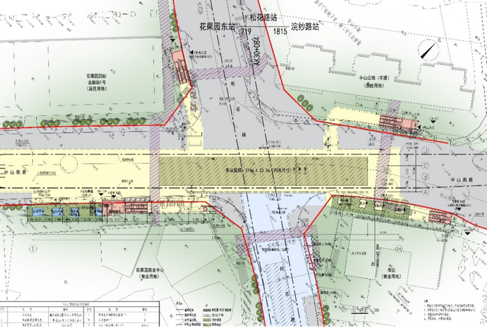相邻的松花路站,沿中山南路东西向敷设,车站长210米,基坑最大开挖深度21.72米,为地下两层三跨框架结构(部分为地下三层)。松花路站由中铁二局集团承建,隶属于贵阳轨道交通三号线土建9标。该标段项目书记周华川介绍,松花路站与花果园东站在负一层有通道相连,连接部分的面积大约有1700平方米。