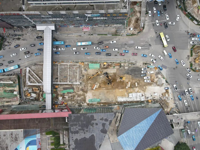 花果园东站的建设者正全力展开工作,
