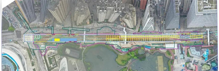 据了解,在花果园东站700多米长、深度达到36米左右的巨大空间内,土石方的总开挖量达到了45万方。如果将土方一米见方堆成一座矮墙,可以从贵阳铺到重庆还要多。而松花路站则在松花隧道的边上,紧挨着花果园东站。两座车站的施工条件十分复杂,施工难度很大。