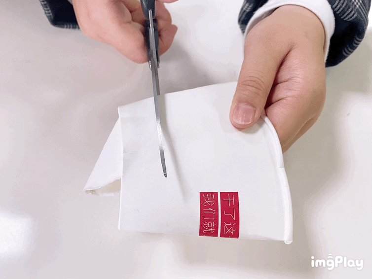 ①取出一个纸杯,从中间剪开,取上半部分。