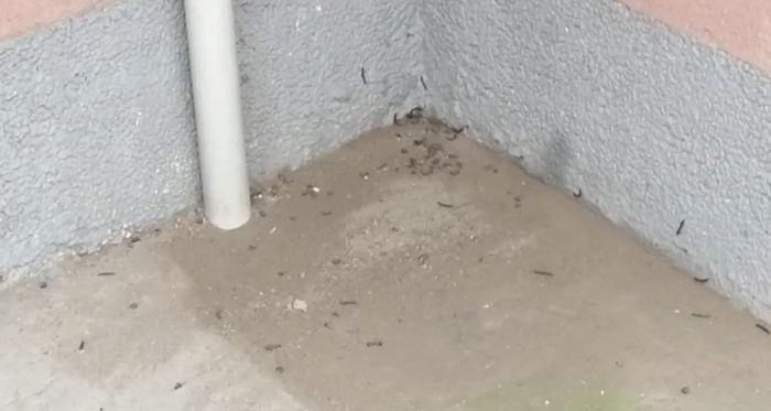 许女士家住该楼,7月初,她发现楼外墙角等处零星开始出现这种虫子,而最近几天,这种虫子的数量开始剧增,“墙角等处密密麻麻的,有些地方甚至堆成一团,看起来特别瘆人。”