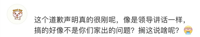 但就此番道歉,网友们却并不买账,甚至更愤怒了:这是老板训话吗?