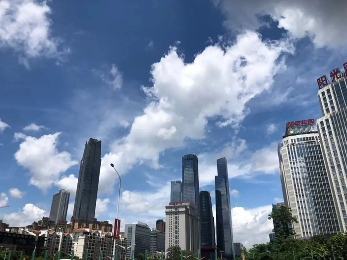 南宁的天空白云朵朵,天气很热