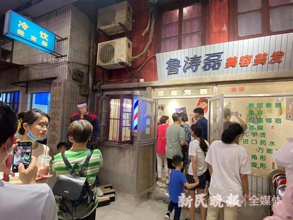 城市集市中还有不少打卡点,鲁涛磊理发店就是其中之一。旋转的灯柱、红绿配色的折叠椅、晕散的灯光照射,有种老上海的电影感。曾经提篮桥地区的看家招牌