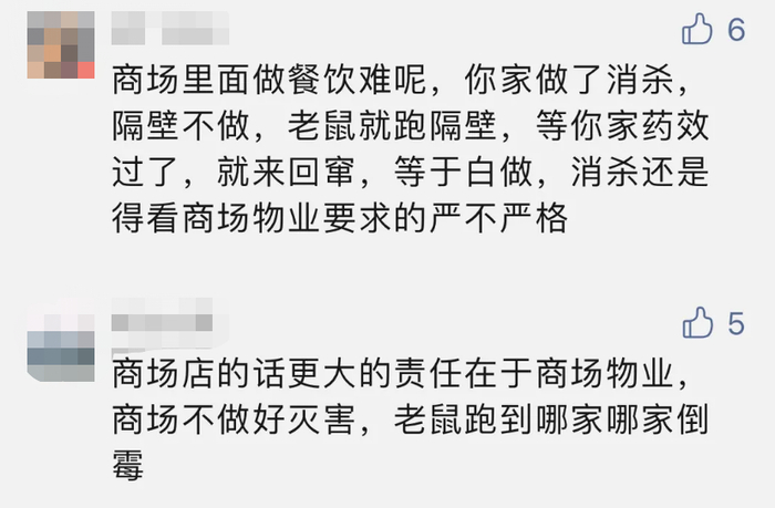 关于老鼠的来源,事后和府捞面方面回应,经过初步调查判断,门店隔壁4家商家正在装修,其中和府捞面正对面的商家停业装修且没有做围挡,老鼠可能源自相邻店面装修。