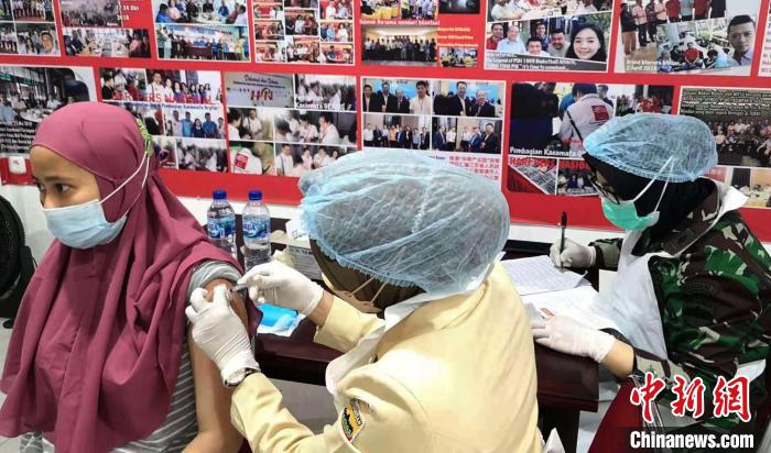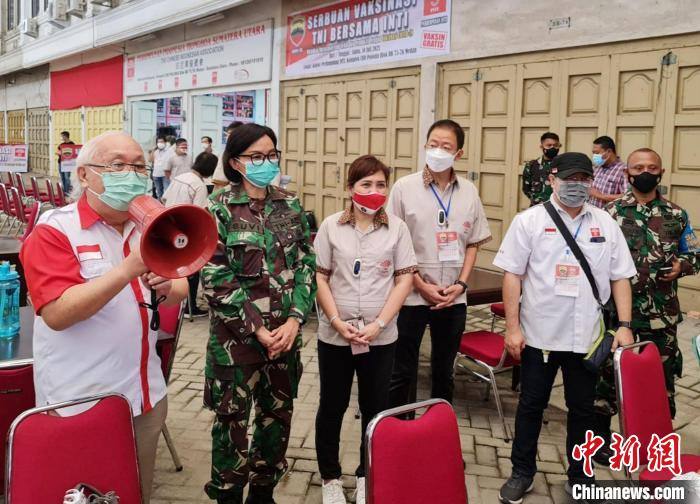 中新网雅加达7月10日电 (记者 林永传)10日,印尼华裔总会北苏门答腊省(简称苏北省)分会与印尼国民军合作,在省会棉兰为1250名不同族群民众接种了中国科兴新冠疫苗。