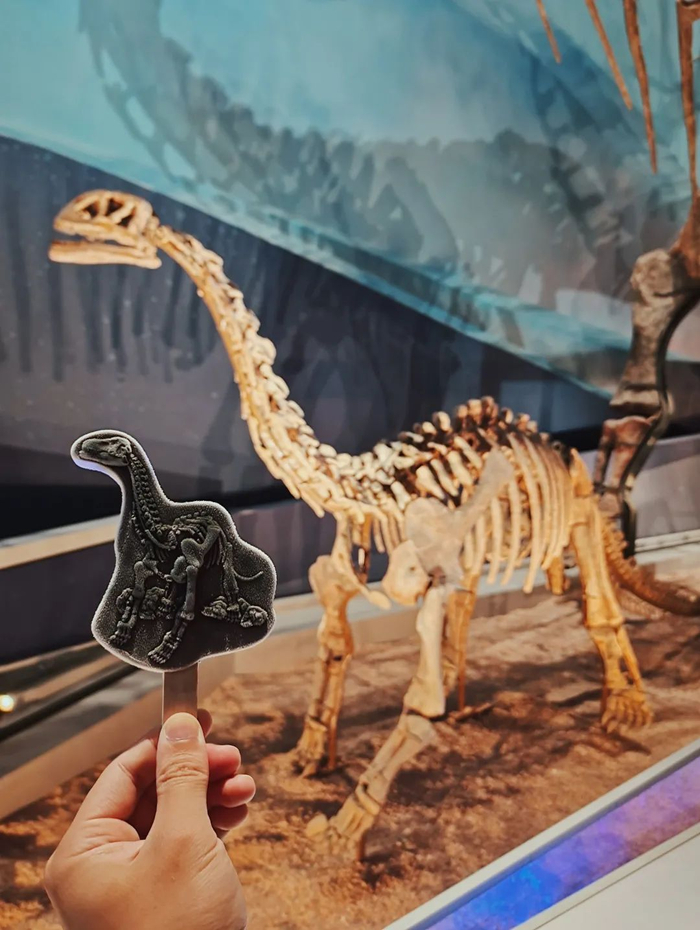 今年六一,武汉自然博物馆重磅推出“马门溪龙”文创雪糕。这支雪糕的原型是马门溪龙化石,它是武汉自然博物馆十大镇馆之宝之一,距今已经有一亿五千年,凭借自身近24米的身长,在馆内占据着绝对的C位。或许你已经见过建筑派、文物派、花卉派雪糕,但你一定没有见过恐龙标本派!