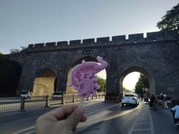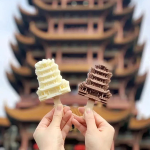 武汉的第一支文创雪糕,来自黄鹤楼。其外观精美,飞檐、瓦片、阁楼都清晰可见,酸奶黄桃口味和巧克力口味的雪糕,分别对应了黄鹤楼的白天和夜晚。早在五一前,“小朱配琦”就来打过卡!五一黄金周期间平均每天卖出15000支,走在景区几乎人手必备!