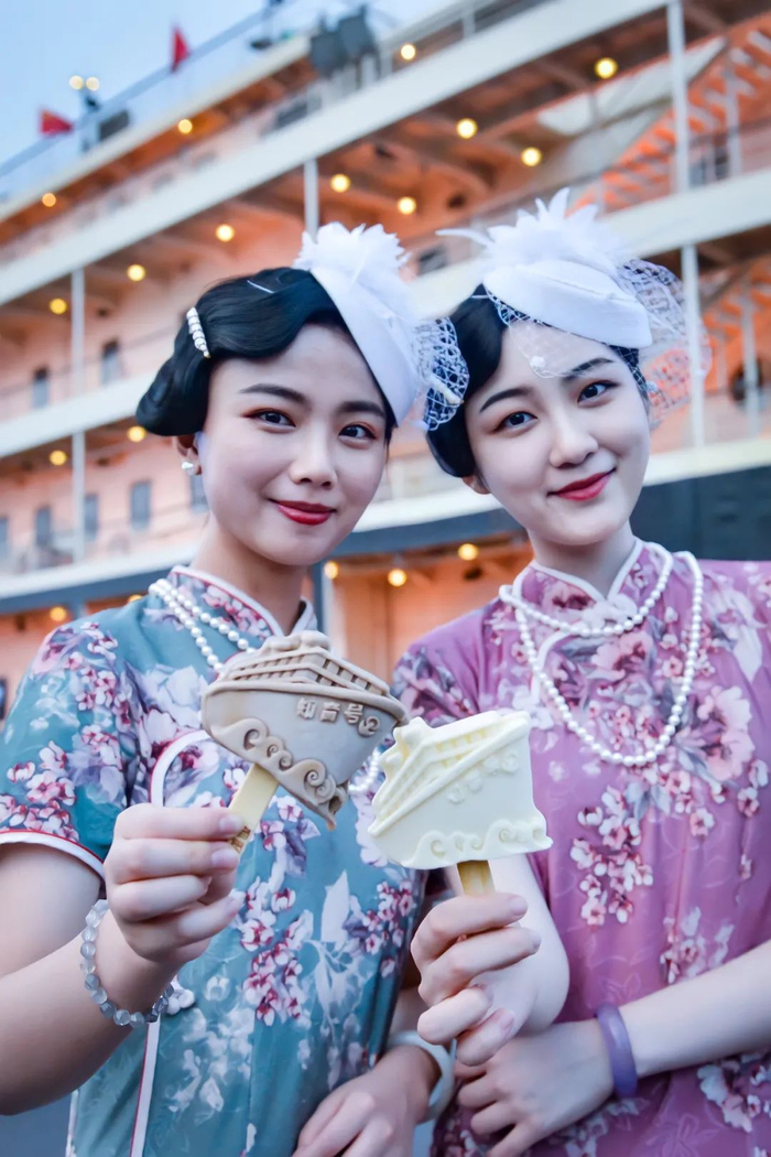 7月6日,“知音号”文创雪糕一经上市,就引发了一波购买热潮。不少粉丝专程前来打卡,登船看演出品尝舌尖上的文创。Q版知音号,每个细节都清晰可见。船头到船尾,细致到每一扇小窗、船身的锚形标识以及船底的浪花元素,还有最为醒目的“知音号”三个大字。