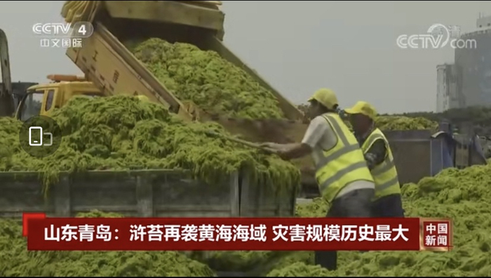 山东青岛遭最大规模浒苔侵袭 靠打捞、靠吃能解决问题吗?