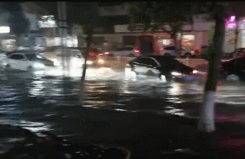 11日下午5点半左右,降雨突袭,河北省唐山市卫国路附近城市道路积水 来源:@河北天气