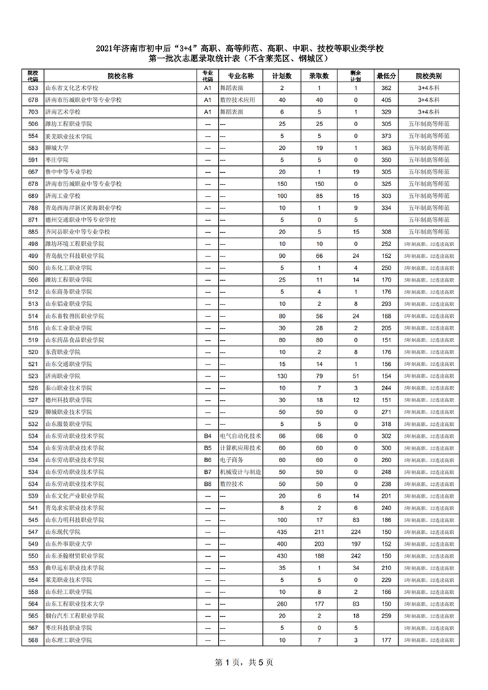 原莱芜地区:高中阶段学校招录第一批次志愿填报放榜
