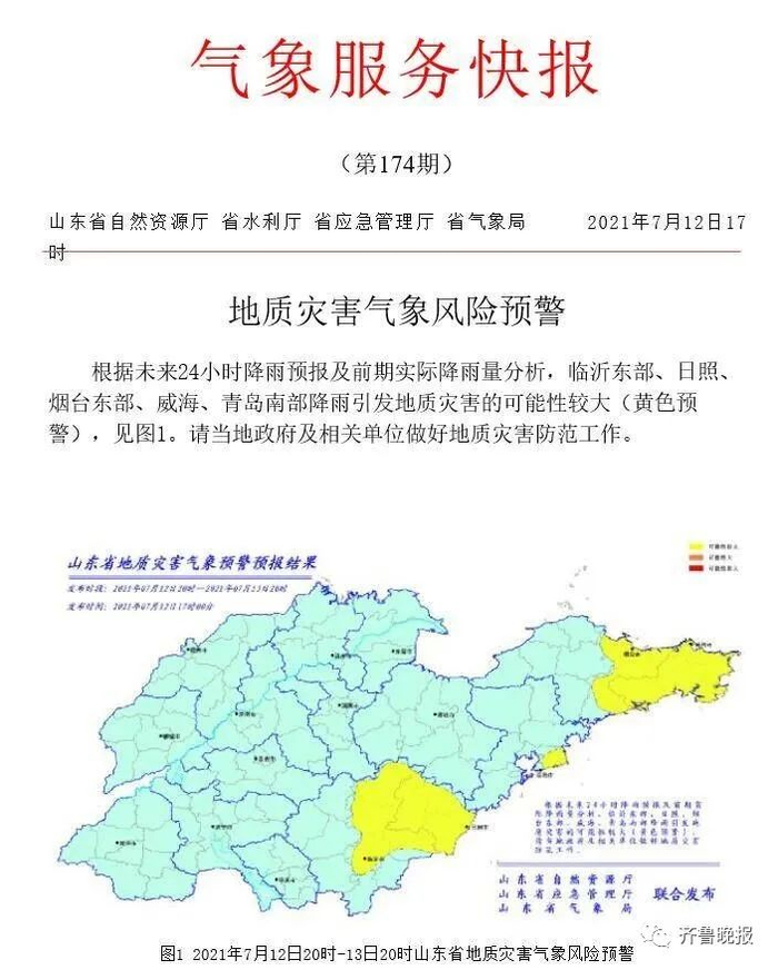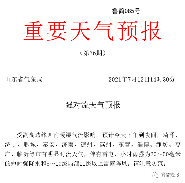 济南市气象台2021年7月12日16时发布的预报: