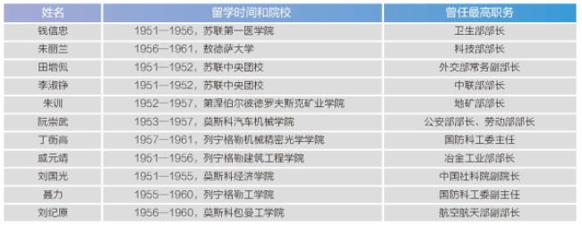 1951年-1965年间留学苏联的学生归国后,在科教、经济、艺术、军事等领域发挥了重要作用。