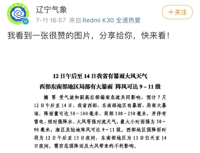 7月11日,水利部召开会商会,分析研判当前雨情、水情和防汛形势,进一步安排部署海河流域暴雨洪水防御相关工作。同时指出,辽西地区12日会迎来大到暴雨天气过程。