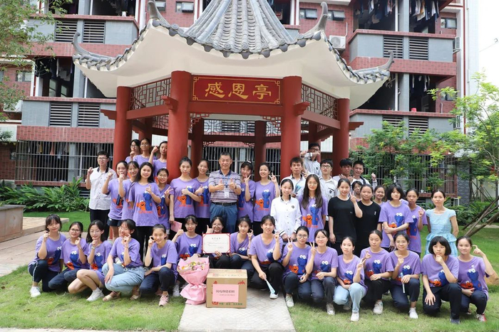 2021年6月8日下午高考结束,在感恩亭,高三九班同学们向学校捐赠了四百多个口罩