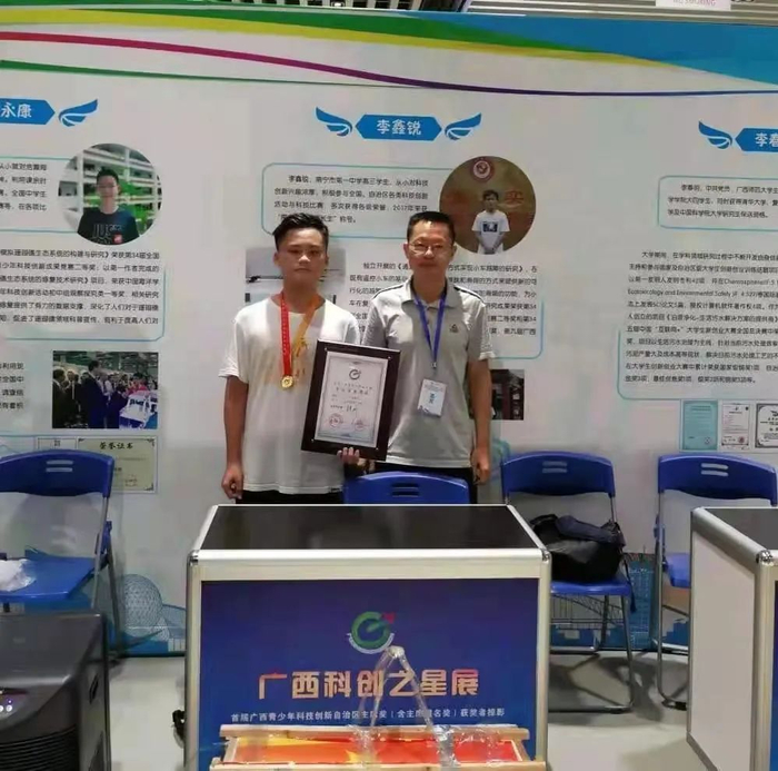 2020届李鑫锐同学(左1)荣获首届广西青少年科技创新自治区主席奖
