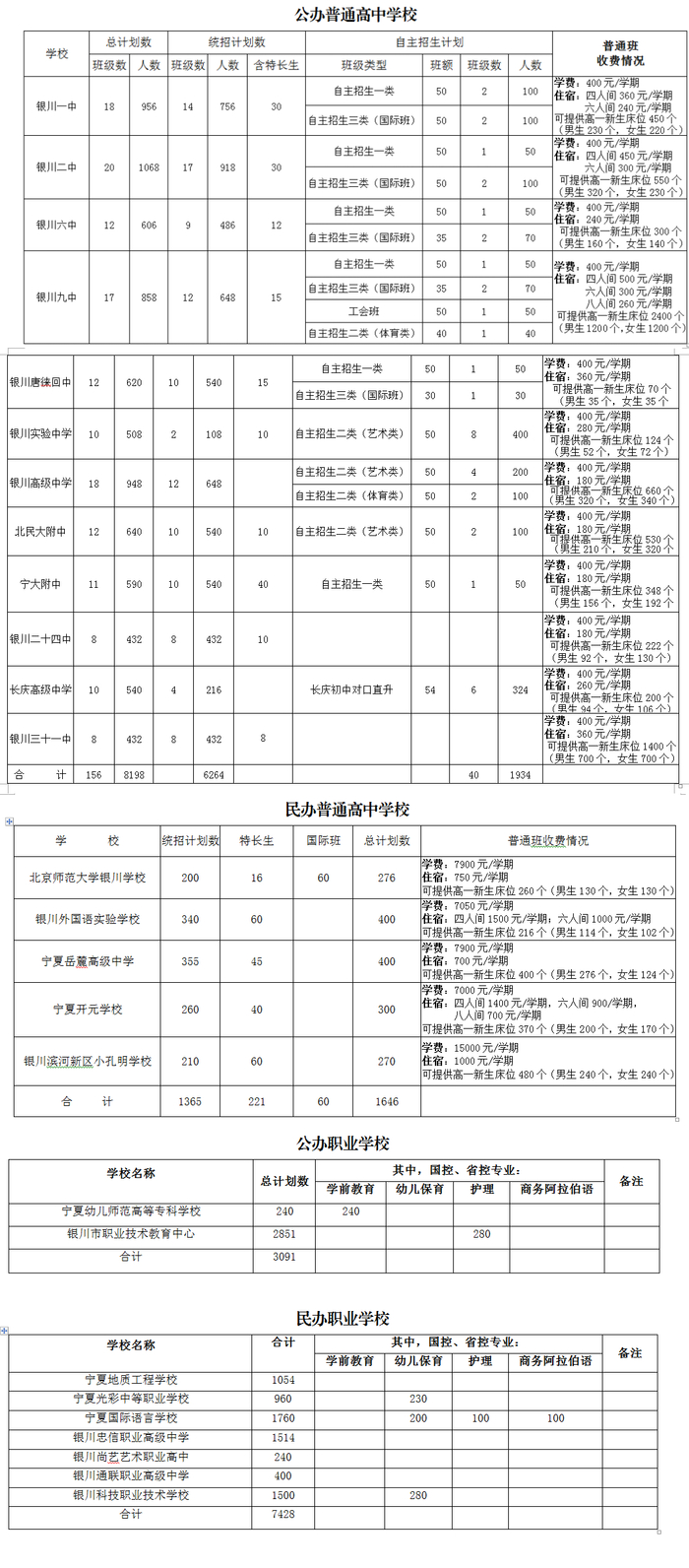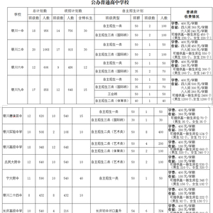 2021年银川市三区高中阶段学校招生计划表