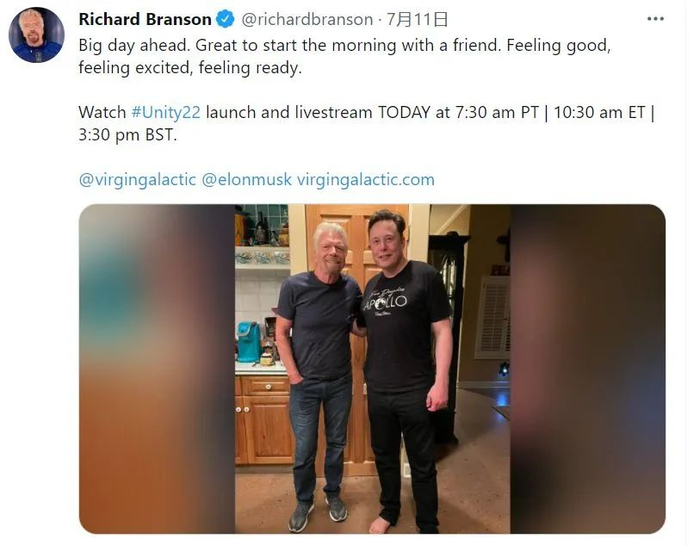 封面、导语图为理查德·布兰森和组员在进入太空前的合照,来源为维珍银河官网;理查德·布兰森和埃隆·马斯克合照来源:理查德·布兰森推特截图