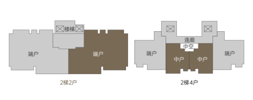 不仅在电梯使用上更加方便,单从一个楼层来看,2梯2户的产品,基本做到了每户都是端户,户户多面采光,采光通风效果是极佳的。