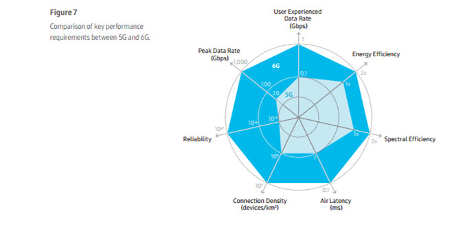 去年7月,韩国科技企业三星发布了题为《6G下一代超链接体验》的白皮书。白皮书涵盖了与6G相关的各个方面,包括技术和社会的大趋势、新服务、需求、候选技术以及预期的标准化时间表,概述了三星公司对6G的愿景。