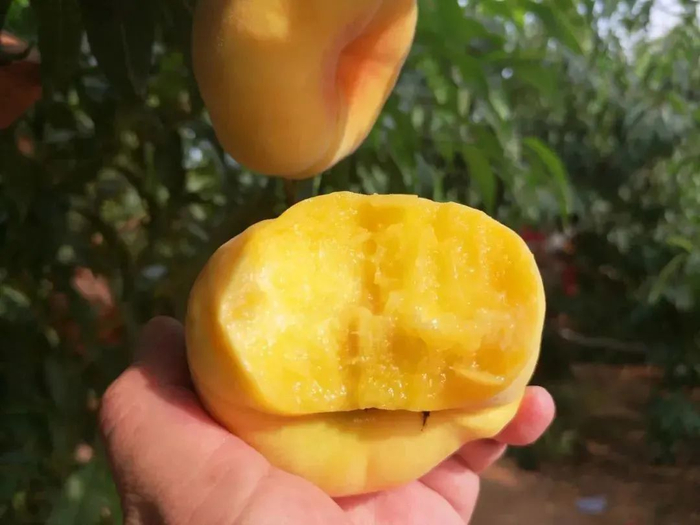 黄金蟠桃果期更是短,尤其今年气温高,成熟快,预计果期只有20天左右,爱吃桃子的朋友不要错过咯!