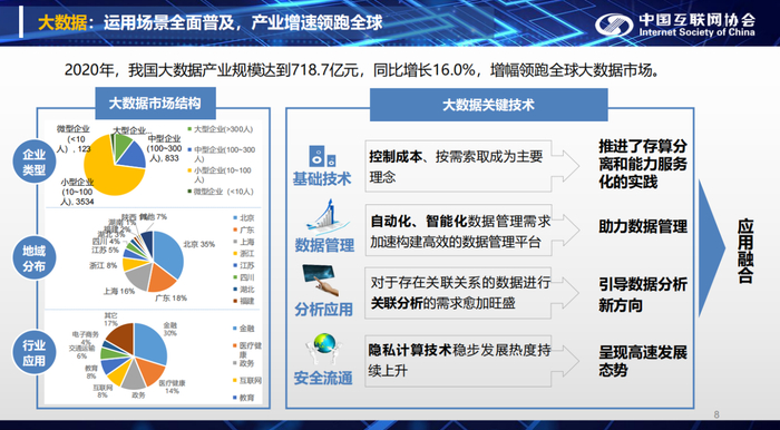 《中国互联网发展报告(2021)》发布:2020年我国大数据产业规模达718.7亿元,增幅领跑全球