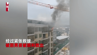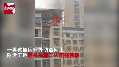 惊魂3分钟!少年被困火海,塔吊工人高空救人!