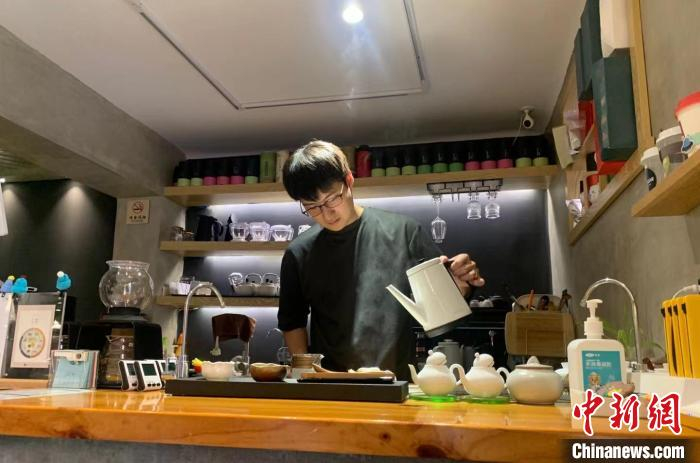“这是原产台湾的高山金萱茶,有股牛奶糖的特别香气。”近日,记者走进“小茶原”茶馆看到,陈钰澍正在忙着冲茶。他的面前放着一只计时器,严控时间完成三次冲泡,再将“三泡”茶汤混合,倒入饮料杯,打包后递给一位顾客。