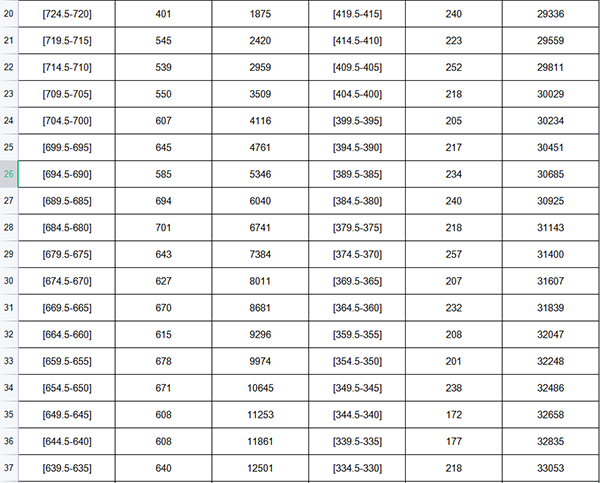 具体各分数段统计如下: