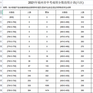 原标题:2021年福州市中考成绩分数段统计表发布