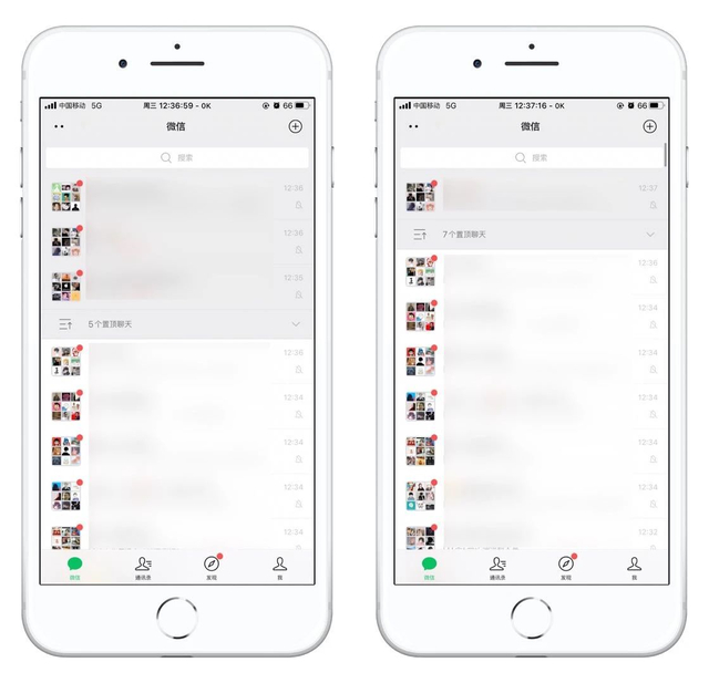 当微信置顶聊天数量超过6个的时候,系统会出现“折叠置顶聊天”的功能,点击后,便可以将置顶聊天折叠。