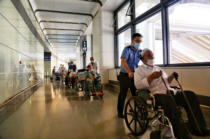 乌鲁木齐站“丝路明珠”重点旅客专区客运员正在送重点旅客登上火车。 陶令伟摄 央广网发