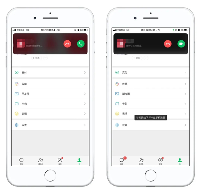 语音通话/视频通话更新后都是横幅通知,不是之前的全屏通知了,当你在浏览文章或者在打字回复消息时不会被打断。