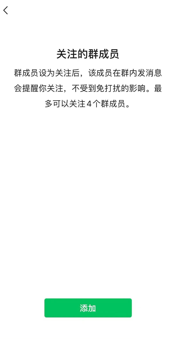 设置关注特定群成员的发言,你关注的人在群聊中发言后,微信就会提醒你关注 Ta 消息,而群中其他人发言则和原来一样保持免打扰状态。
