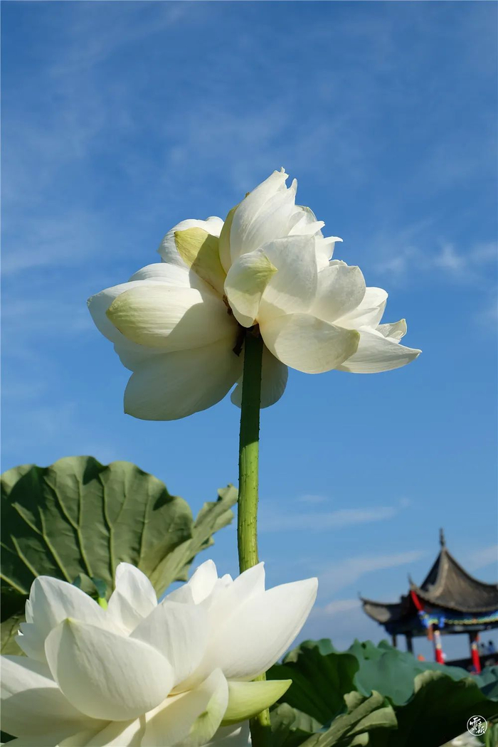 好运莲莲莲……云南普者黑再次出现野生“并蒂莲”,纯白的!