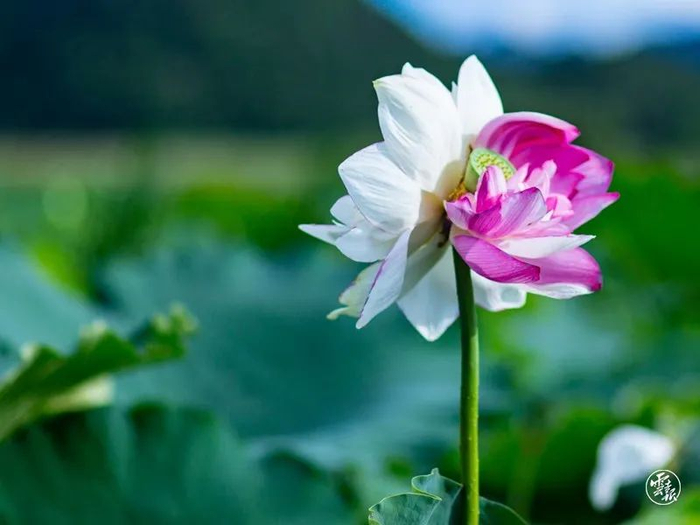第二朵并蒂莲的品种均为普者黑湖小白莲。普者黑小白莲、小红莲、大洒锦、小洒锦是普者黑湖荷花的本地主要品种,花瓣舒展、白色纯洁、红色鲜艳,红白花与绿叶相掩映,让人赏心悦目。