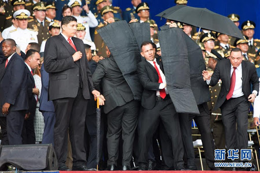2018年8月4日,加拉加斯,安全人员保护总统马杜罗 图自新华社