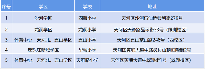 越秀发布也公布了越秀区小学