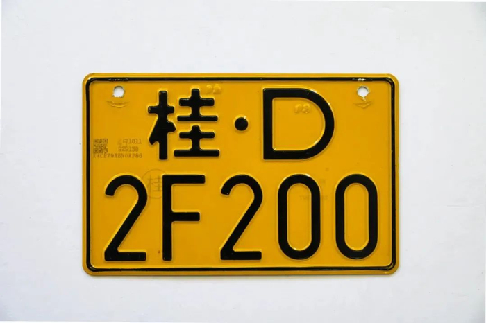 电动两轮摩托车:黄底黑字,黑框线,号牌大小为220mm X 140mm。